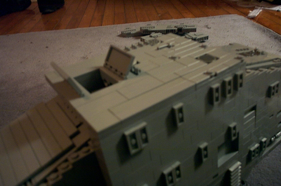 tiled look to hide the studs, and was extended by 1 stud. The chin guns were also modified