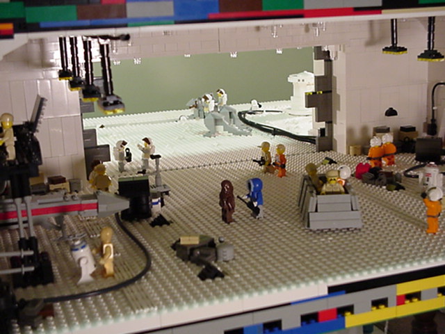 Echo Base After completing my version of a Lego AT-AT, I wanted to complete the Hoth battle scene as best I could. I decided that a great way to do this might be to build the hangar bay from Empire Strikes Back to serve as the backdrop to the AT-AT. If you'd like to see the complete scene, check out my pictures from this event.