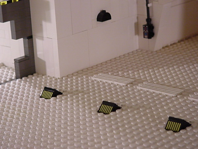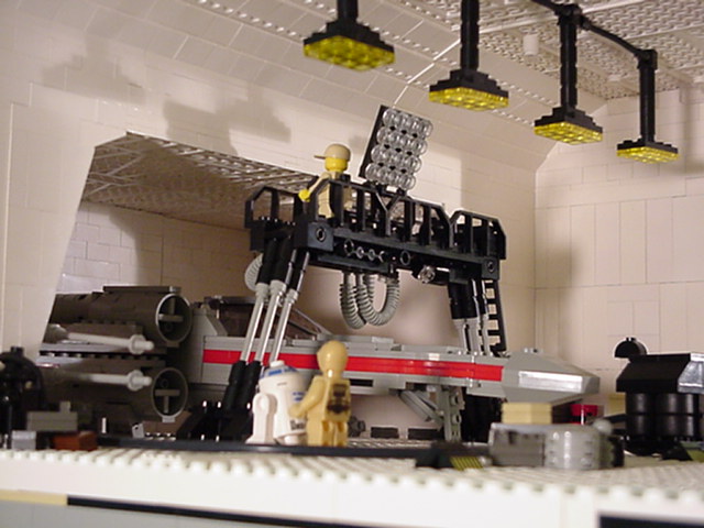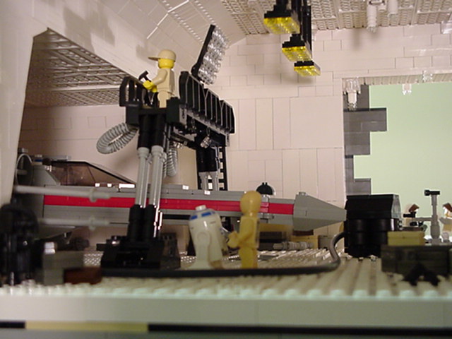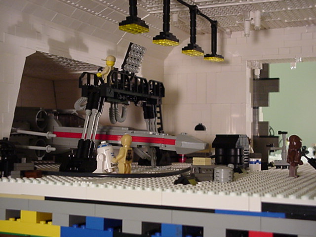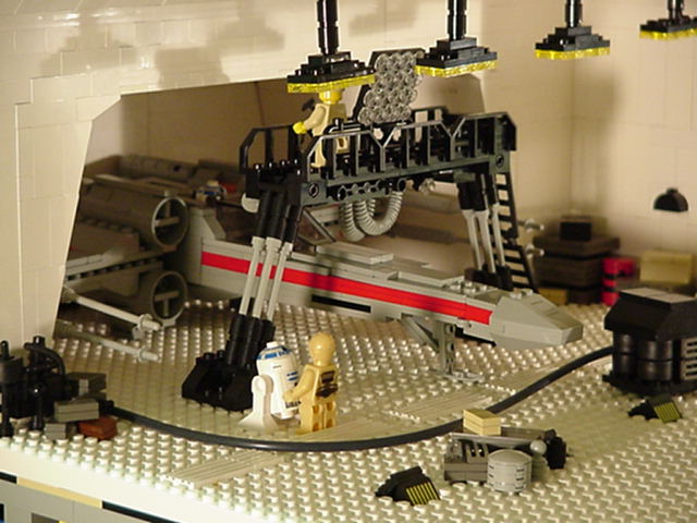 The details inside (and outside) were some of the most important parts. The actual 'canon' details are the black radar-dish turret, tauntauns, a truss (positioned over the X-wing), and a small personel transport (which, after building, I found out I did incorrectly). In addition to various other greebly-bits, I must admit I stole an idea for a small repair droid from someone on Brickshelf, though I forget who... (If you're reading and see your robot, email me and get credited here!)